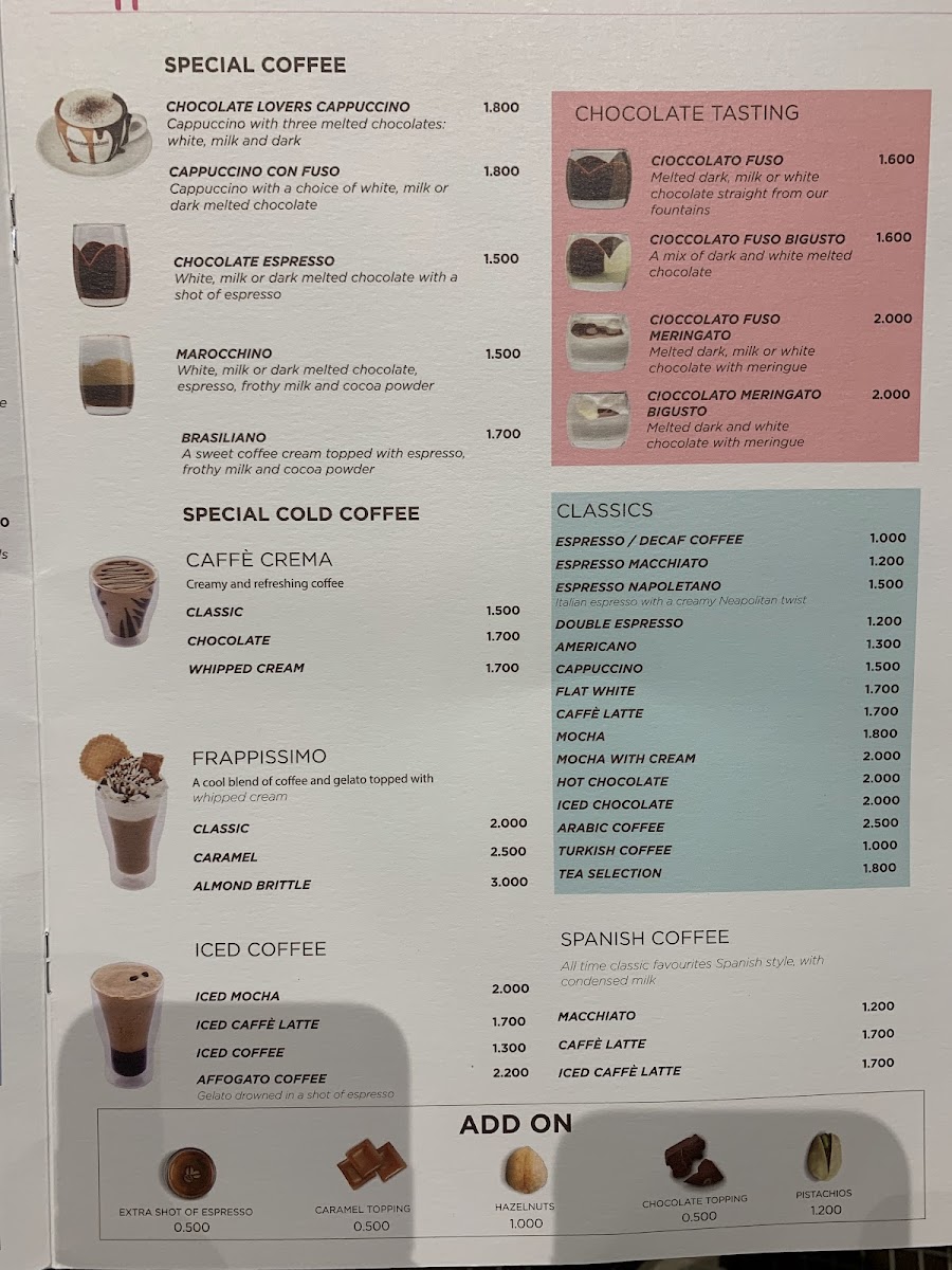 As you step into the café, you're greeted by the intoxicating aroma of freshly made desserts and rich chocolate. The warm, inviting atmosphere pairs beautifully with the mouthwatering treats on offer. Whether you're looking for a quick dessert fix or a leisurely indulgence, Cioccolatitaliani caters to your sweet cravings with finesse.